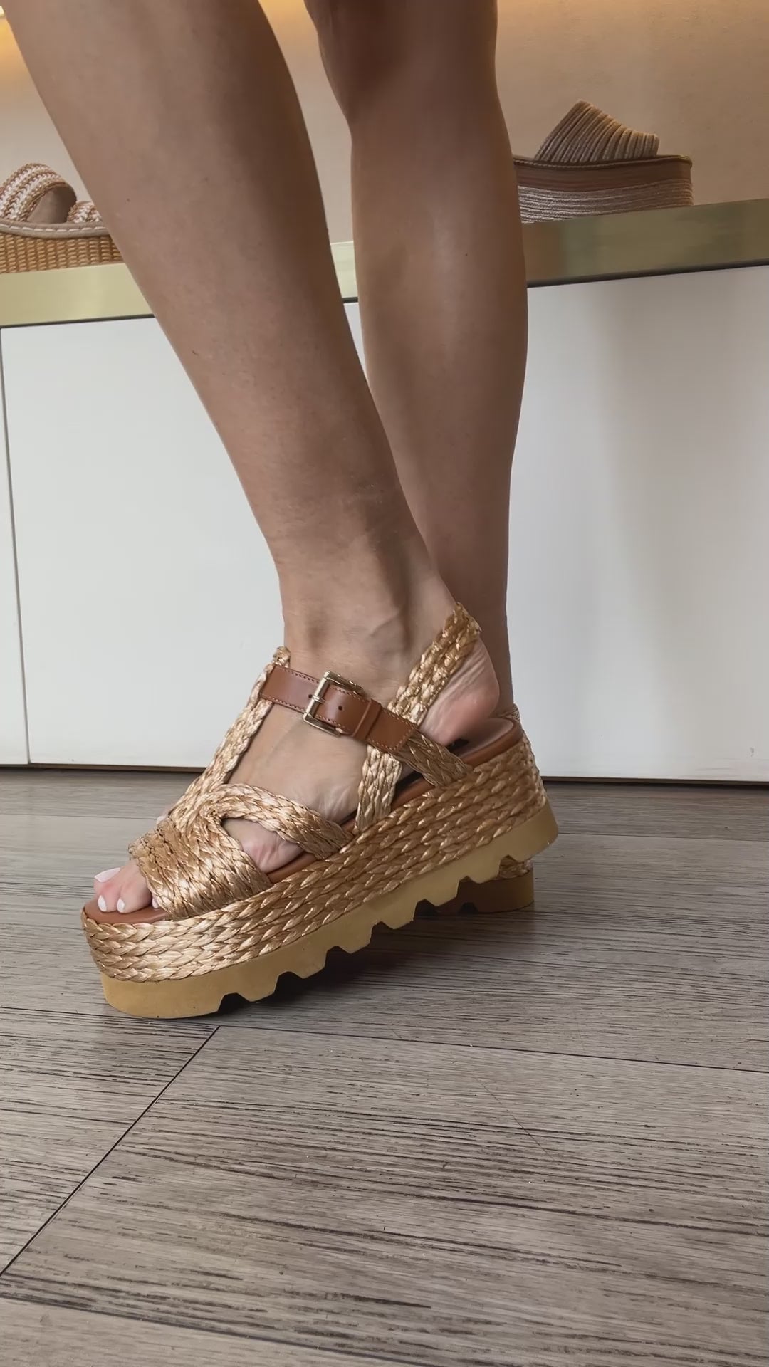 Flatforms with metallic braid detail in Hazelnut color.
