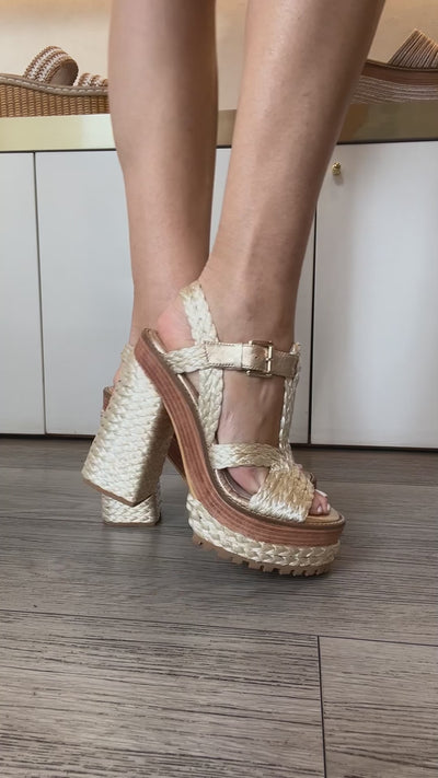 Sand ArgenteSandalias de trenzas metalizadas elaboradas artesanalmente en un sofisticado tono arena plateada. Lleva una correa de cuero con acabado satinado y franja en tono madera sobre la plataforma añade un contraste natural y elegante. Un diseño pensado para destacar con sutileza y personalidad.